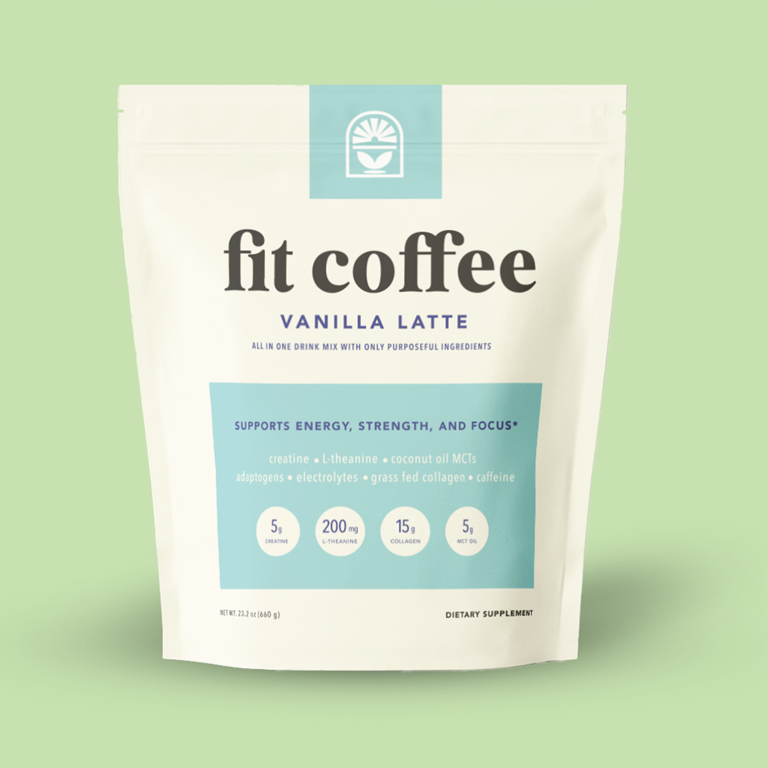 Fit Coffee's Vanilla Latte Mix, packed full with all your daily supplements - lion's mane, L-theanine, creatine, grass fed collagen, vitamin c, mct oil, caffeine.